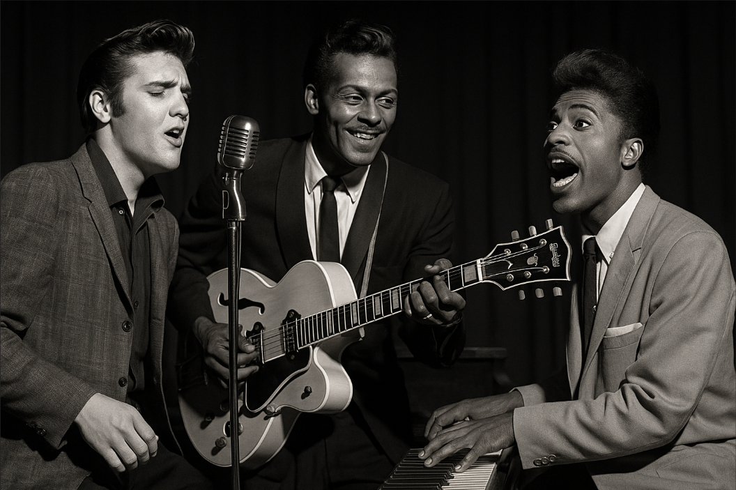 로큰롤의 탄생과 성장을 이야기할 때, 척 베리와 리틀 리처드, 그리고 엘비스 프레슬리를 빼놓을 수 없습니다. 척 베리는 유쾌한 가사와 리듬감 있는 기타 연주로 청소년들의 일상과 감정을 그대로 음악으로 표현했습니다. 그가 만든 무대 퍼포먼스는 훗날 록 밴드들이 따라야 할 전형이 되었고, 리틀 리처드는 폭발적인 피아노 연주와 에너지 넘치는 보컬로 관객의 시선을 사로잡았습니다.