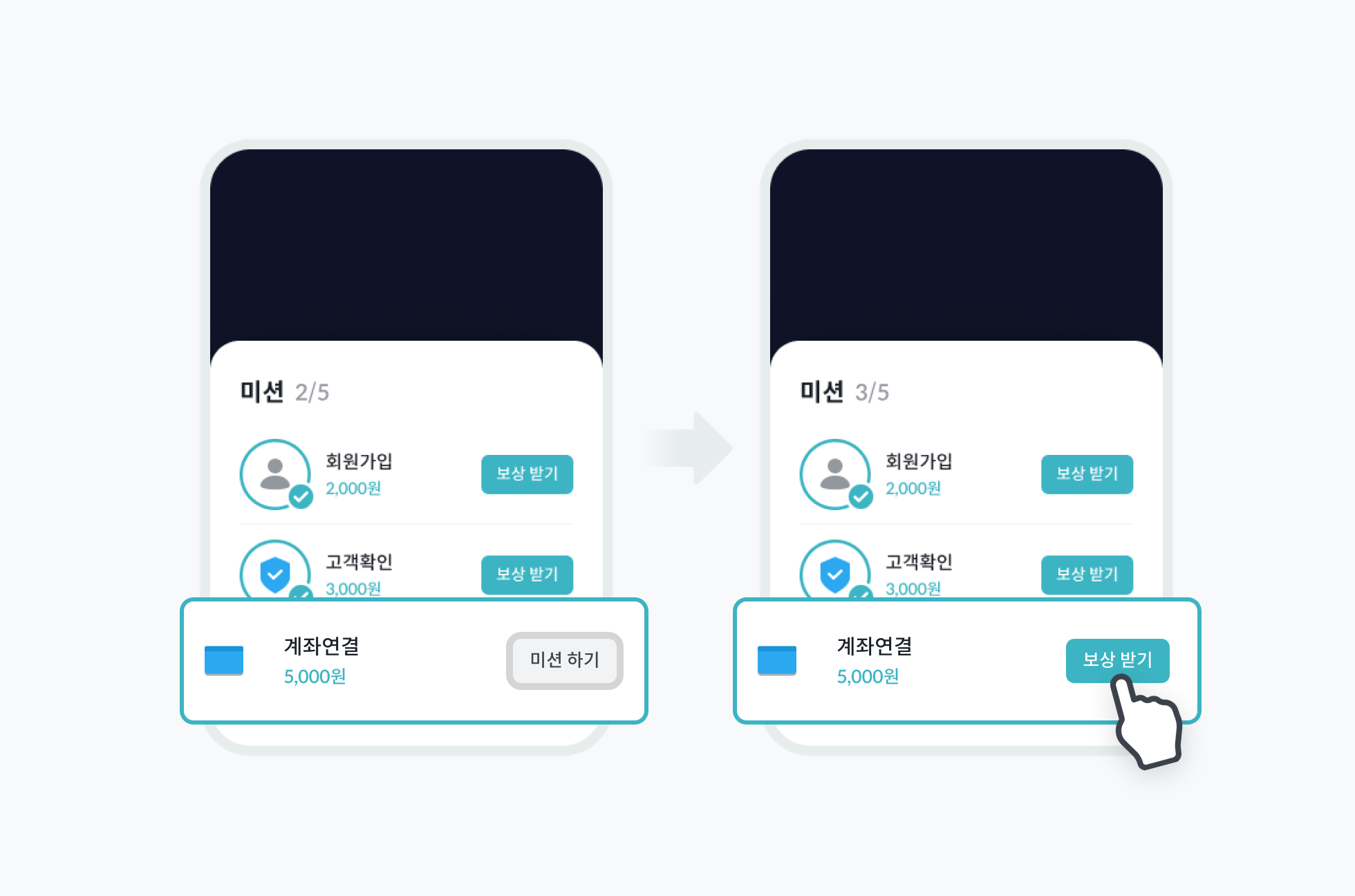 웰컴 미션을 완료하면 추가로 2만원을 받을 수 있습니다. 다섯 단계로 구성되어 있으며 일부는 자동으로 완료됩니다.