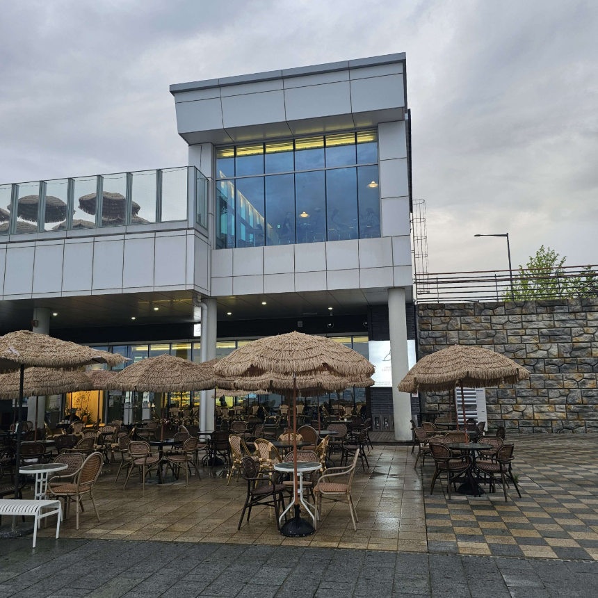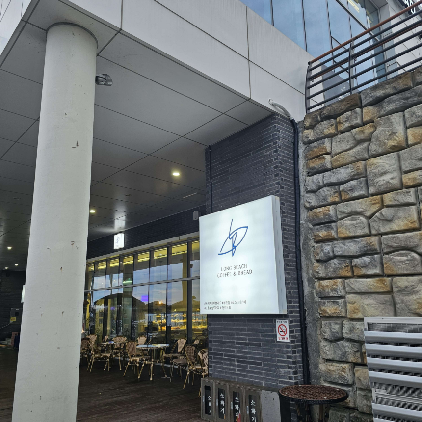 롱비치커피앤브래드는 인천 연수구 랜드마크로 194, 바다 바로 옆에 자리 잡고 있어요. 송도에서도 특히 탁 트인 바다를 바로 앞에서 마주할 수 있는 곳이라, 카페 안에 들어가기 전부터 뷰가 이미 한몫하는 느낌이에요.