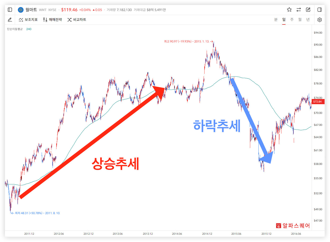 주가의 전반적인 추세를 파악하는 데 유용합니다.